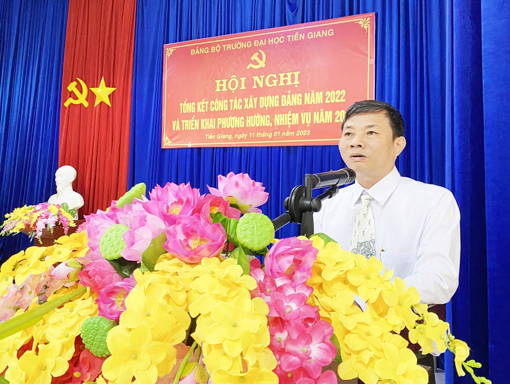 Phát biểu tại Hội nghị, đồng chí Thái Ngọc Bảo Trâm - Tỉnh ủy viên, Bí thư Đảng ủy Khối Cơ quan và Doanh nghiệp tỉnh Tiền Giang đánh giá cao kết quả thực hiện công tác xây dựng Đảng năm 2022 của Đảng ủy nhà trường cũng như sự nỗ lực, cố gắng của tập thể Đảng ủy trong lãnh đạo, điều hành và thực hiện có hiệu quả các mục tiêu Nghị quyết đề ra. Đồng chí đề nghị trong thời gian tới, Đảng ủy nhà trường tiếp tục tăng cường công tác giáo dục chính trị tư tưởng cho đảng viên, viên chức, người lao động, sinh viên; đoàn kết, thực hiện tốt nhiệm vụ chính trị, giữ vững thành tích của Đảng bộ nhà trường trong 18 năm xây dựng và phát triển.
