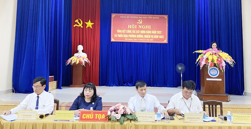 Ngày 11/01/2023, Đảng ủy Trường Đại học Tiền Giang đã tổ chức Hội nghị tổng kết công tác xây dựng Đảng năm 2022 và phương hướng, nhiệm vụ công tác năm 2023. Đến dự và chỉ đạo Hội nghị có đồng chí Thái Ngọc Bảo Trâm - Tỉnh ủy viên, Bí thư Đảng ủy Khối Cơ quan và Doanh nghiệp tỉnh Tiền Giang, các đồng chí trong Ban Chấp hành Đảng ủy và toàn thể đảng viên nhà trường.