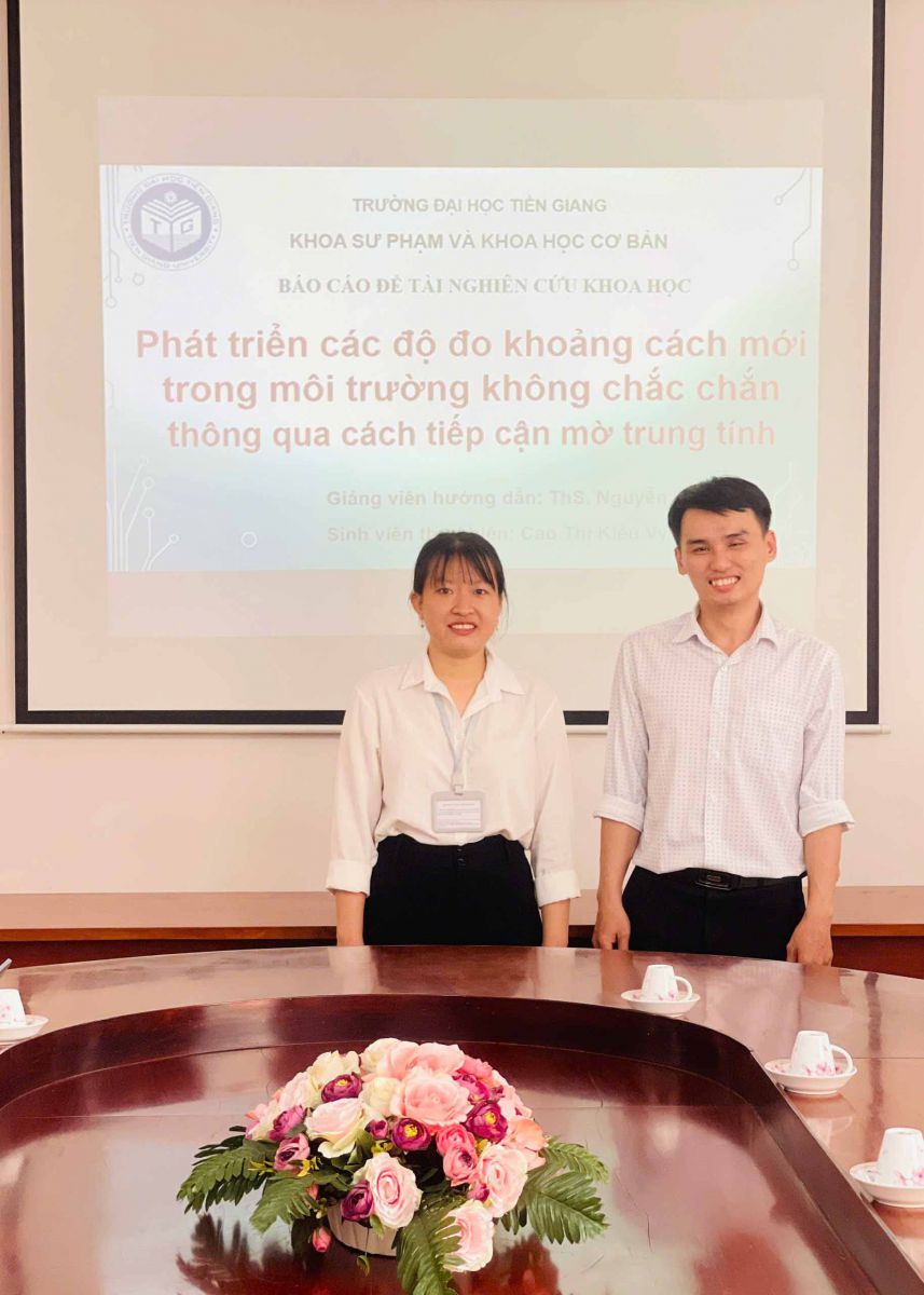 Ngày 11/09/2025, Phòng QLKHCN&HTQT đã tổ chức đánh giá kết quả thực hiện đề tài nghiên cứu khoa học sinh viên cấp Trường: “Phát triển các độ đo khoảng cách mới trong môi trường không chắc chắn thông qua cách tiếp cận mờ trung tính.” do sinh viên Cao Thị Kiều Vy, lớp Đại học Sư phạm Toán học 22, Khoa SP&KHCB chủ nhiệm thực hiện dưới sự hướng dẫn khoa học của Thạc sĩ Nguyễn Thanh Nhã, Giảng viên Khoa SP&KHCB.