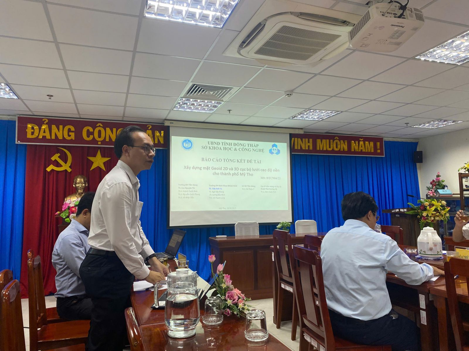Ngày 29/9/2025, Sở Khoa học và Công nghệ tỉnh Đồng Tháp tổ chức cuộc họp Hội đồng tư vấn đánh giá và nghiệm thu kết quả nhiệm vụ khoa học và công nghệ (đề tài KH&CN cấp tỉnh): “Xây dựng mặt Geoid 2D và 3D cục bộ lưới cao độ code nền cho Thành phố Mỹ Tho” do Tiến sĩ Cao Nguyên Thi – Phó Hiệu trưởng trường Đại học Tiền Giang làm chủ nhiệm đề tài, Tiến sĩ Trần Anh Tú (Trường ĐH Bách Khoa – ĐHQG Tp.HCM) đồng chủ nhiệm.