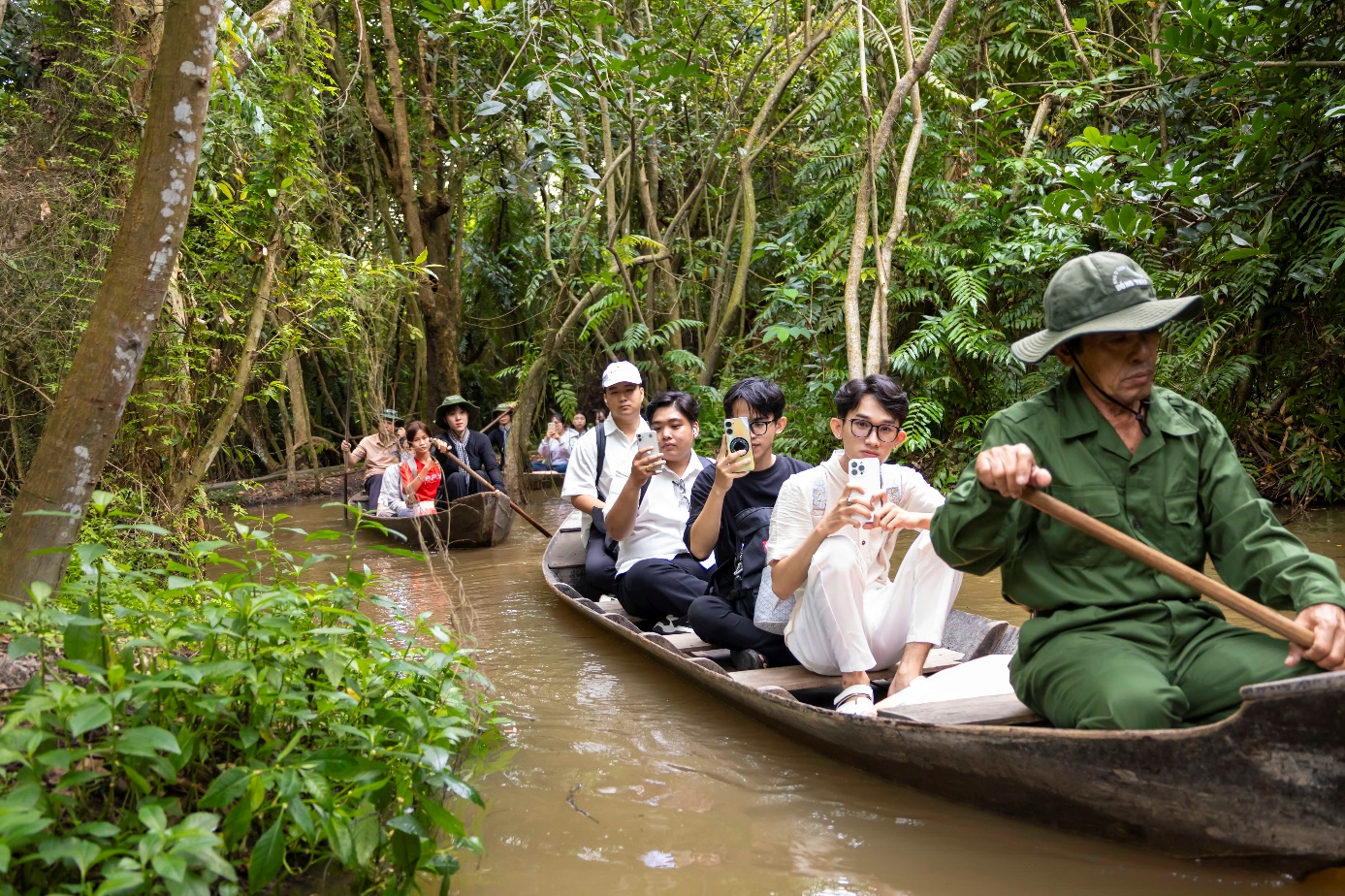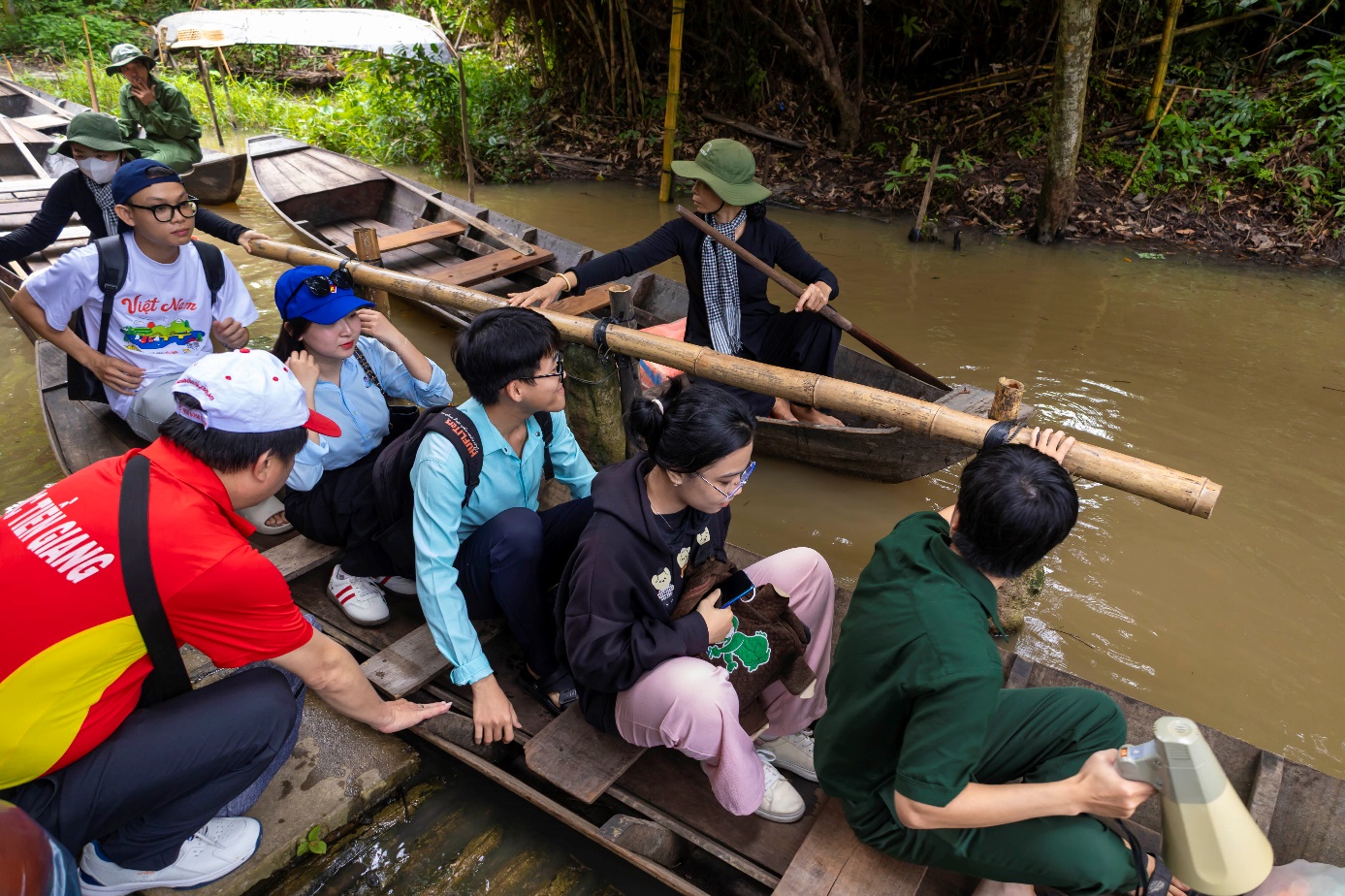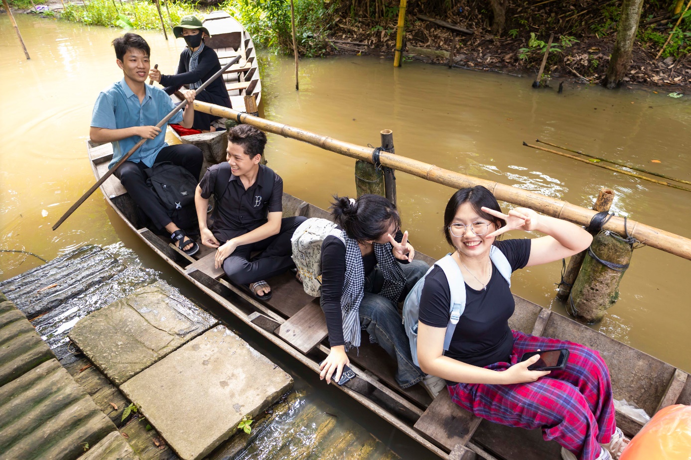 Các bạn lần đầu tiên được trải nghiệm đi xuồng ba lá