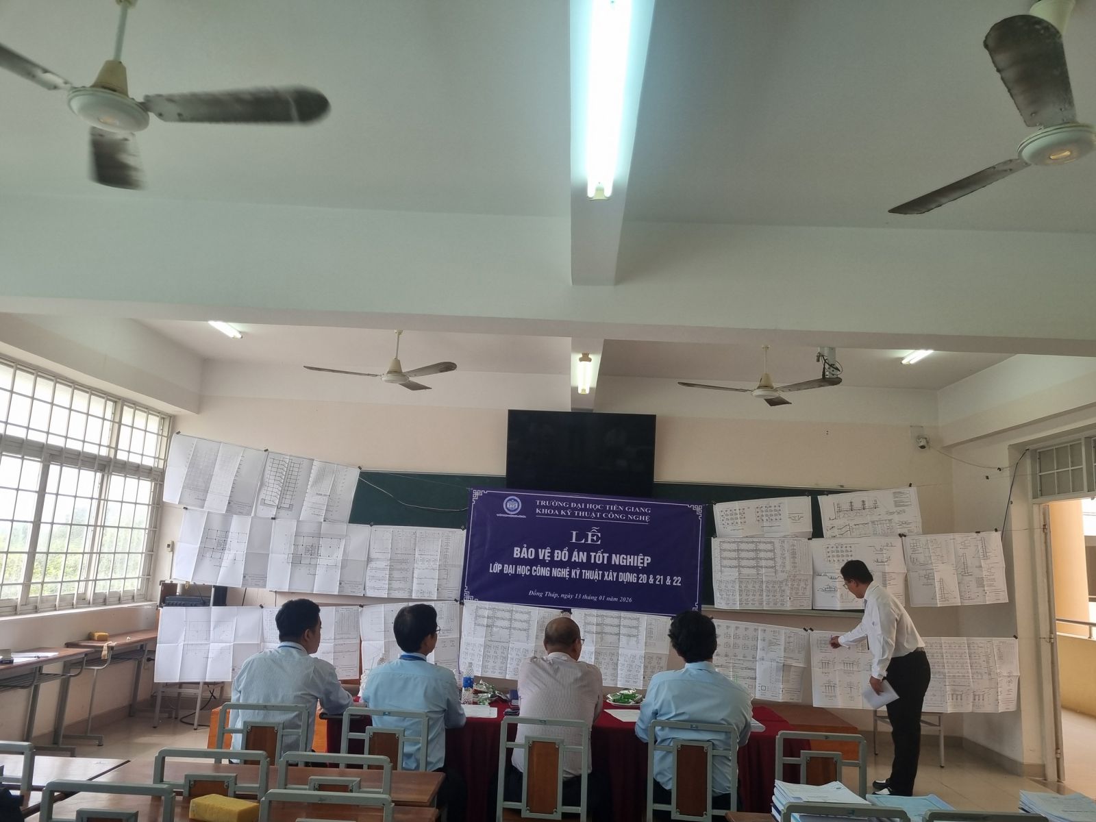 Sáng ngày 13/01/2026, Khoa Kỹ thuật Công nghệ đã thành lập các Hội đồng bảo vệ đồ án tốt nghiệp cho sinh viên chuyên ngành Công nghệ kỹ thuật Xây dựng. Theo chương trình đào tạo ngành Đại học CNKT Xây dựng thì để hoàn thành Chương trình đào tạo các sinh viên phải thực hiện hoàn chỉnh một đồ án tốt nghiệp hoặc khoá luận tốt nghiệp.