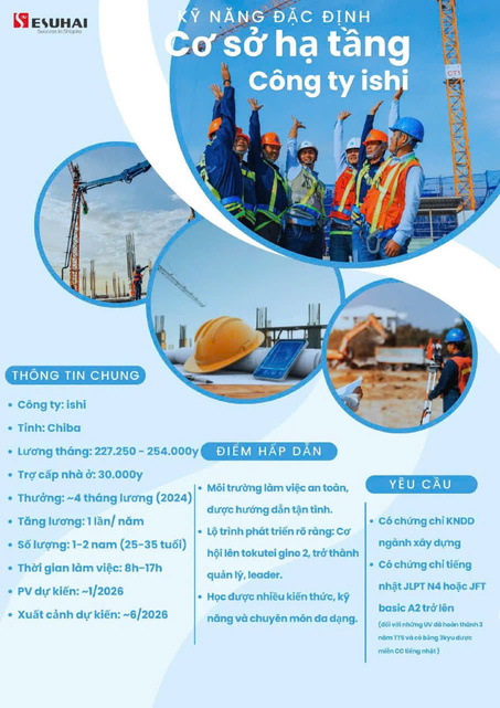 Nhằm mở rộng cơ hội việc làm quốc tế cho sinh viên và người lao động, chương trình hợp tác với doanh nghiệp Nhật Bản hiện tuyển dụng nhiều ngành nghề đa dạng, phù hợp với cả nam và nữ, định hướng phát triển lâu dài.