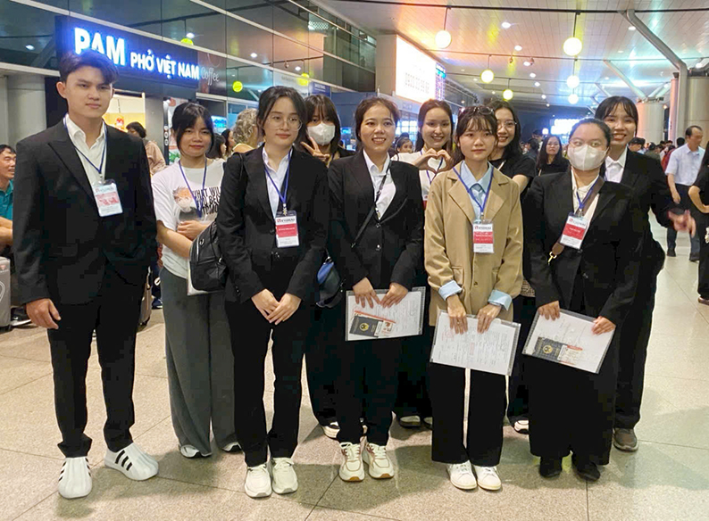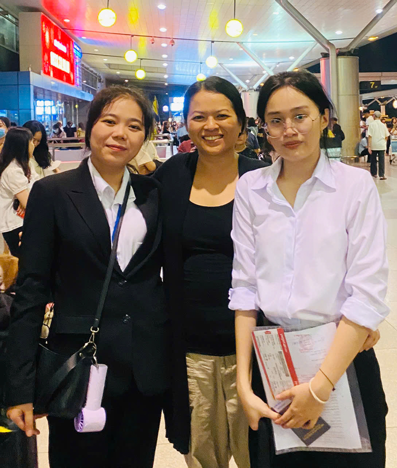 Thảo Quyên - Phương Anh cùng cô giáo dạy tiếng Nhật chụp hình lưu niệm trước giờ xuất cảnh sang Nhật làm việc.