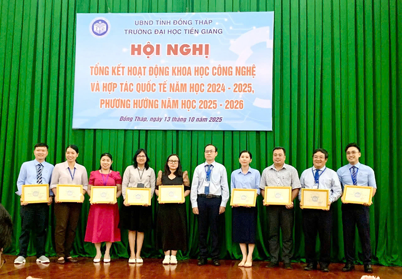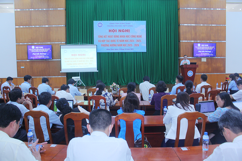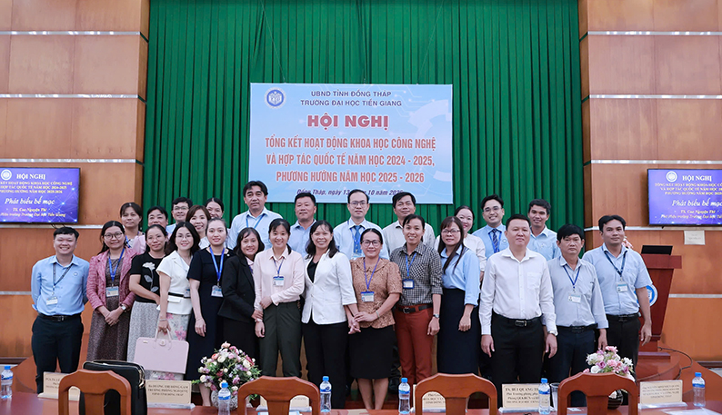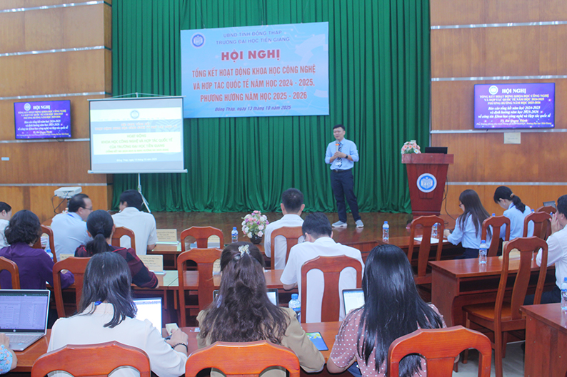 Sáng ngày 13/10/2025, tại Phòng Khánh tiết, Trường Đại học Tiền Giang tổ chức Hội nghị “Tổng kết hoạt động Khoa học Công nghệ và Hợp tác Quốc tế năm học 2024–2025, phương hướng năm học 2025–2026”.