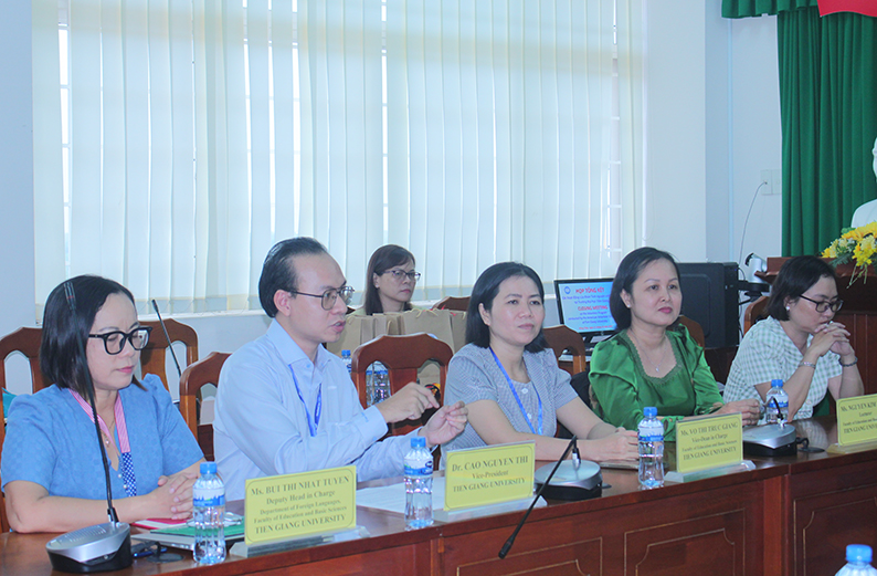 Phát biểu tại buổi tổng kết, Phó Hiệu trưởng Cao Nguyên Thi bày tỏ niềm vui mừng khi chương trình được tổ chức thành công, đồng thời gửi lời tri ân sâu sắc đến ông Huỳnh Long Hoàng – người đã kết nối và đồng hành cùng Trường Đại học Tiền Giang trong nhiều năm qua, góp phần mang đến cơ hội học tập, giao lưu và rèn luyện tiếng Anh thiết thực cho viên chức, sinh viên nhà trường. Ông cũng gửi lời cảm ơn đến các tình nguyện viên Hoa Kỳ đã dành thời gian, công sức và tình cảm để hỗ trợ sinh viên, giúp các em có thêm động lực nâng cao trình độ ngoại ngữ và kỹ năng mềm – những yếu tố quan trọng trong quá trình hội nhập quốc tế.