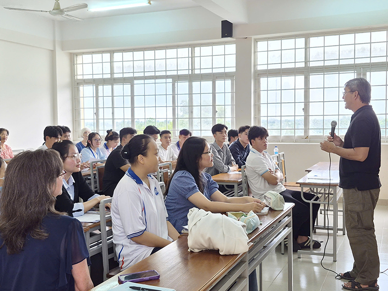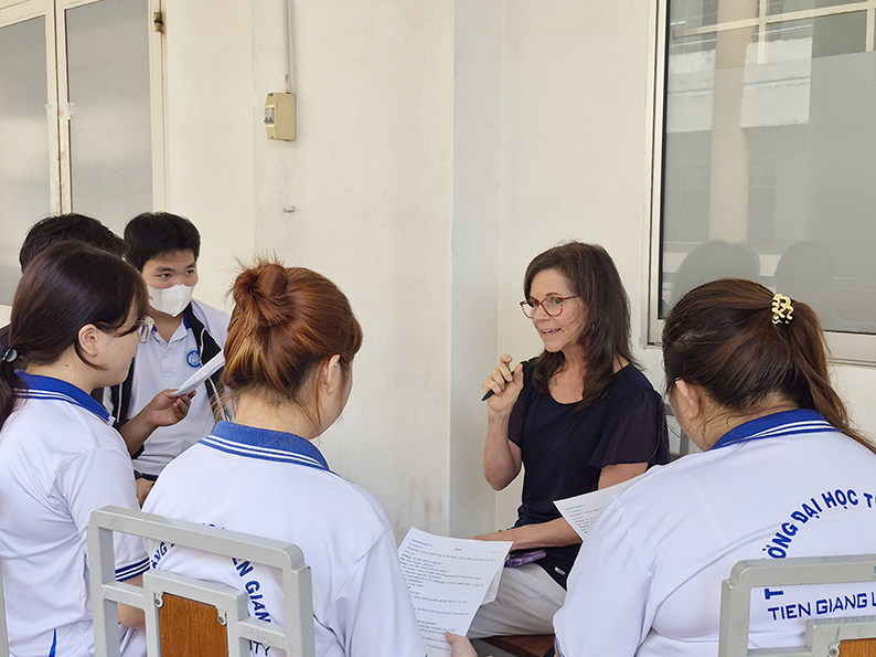 Từ ngày 29 đến 31/10/2025, Trường Đại học Tiền Giang phối hợp cùng đoàn tình nguyện viên Hoa Kỳ tổ chức chương trình giao lưu và luyện tập kỹ năng tiếng Anh dành cho viên chức và sinh viên nhà trường. Hoạt động nhằm tạo cơ hội để sinh viên rèn luyện khả năng giao tiếp, nâng cao năng lực ngoại ngữ, đồng thời góp phần quảng bá hình ảnh Trường Đại học Tiền Giang với các đối tác quốc tế.