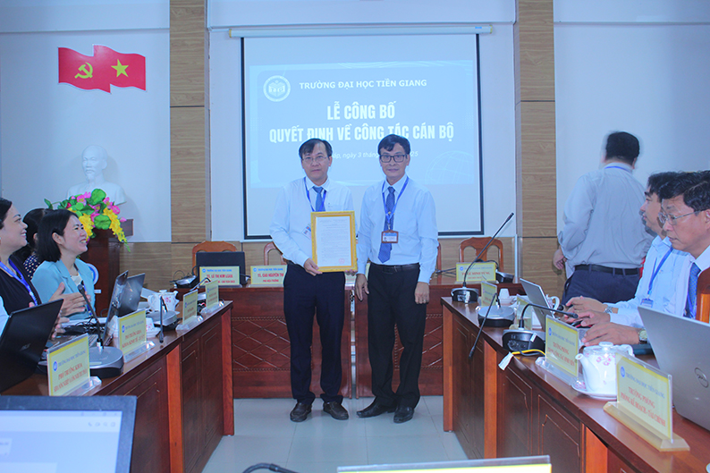 Ngoài ra, Trường Đại học Tiền Giang bổ nhiệm lại ông Đinh Quốc Cường, giữ chức vụ Trưởng phòng Tổ chức – Hành chính và bổ nhiệm lại bà Nguyễn Thị Kim Xuyến, giữ chức vụ Giám đốc Trung tâm Thông tin – Thư viện. Cả hai có thời hạn giữ chức vụ là 05 năm, kể từ ngày 01/11/2025.