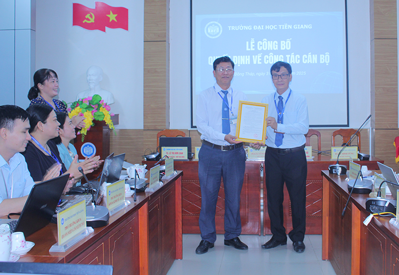 Sáng ngày 03/11/2025, Trường Đại học Tiền Giang tổ chức Lễ công bố và trao quyết định bổ nhiệm, bổ nhiệm lại viên chức quản lý cho 04 viên chức các đơn vị trực thuộc.