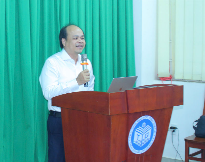 Thay mặt Nhà trường, TS. Lê Thị Kim Loan – Phó Hiệu trưởng gửi lời chào mừng và bày tỏ niềm vinh dự khi Trường Đại học Tiền Giang được Sở KH&CN tin tưởng giao nhiệm vụ đào tạo lực lượng nòng cốt trong tiến trình chuyển đổi số của tỉnh.