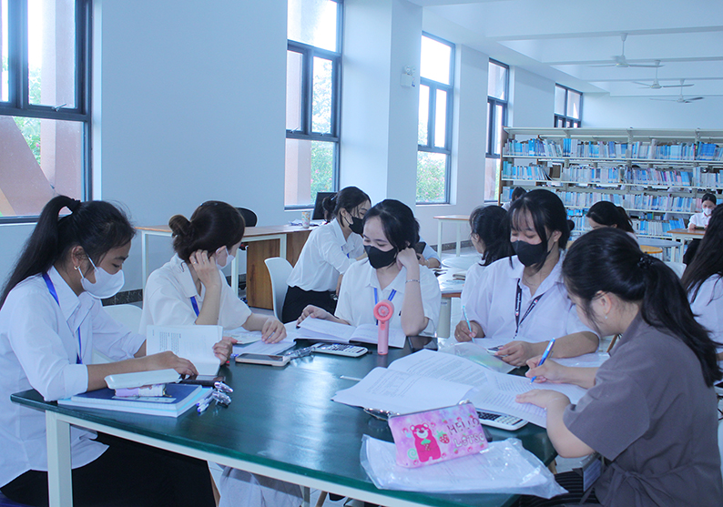 Sinh viên học tập và làm việc nhóm tại Thư viện của Trường.