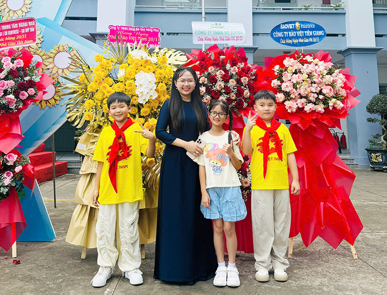 Cựu sinh viên Dương Thị Hoàng Oanh, tốt nghiệp Đại học Sư phạm giáo dục tiểu học tháng 10-2024, chính thức trở thành giáo viên Trường Tiểu học Thủ Khoa Huân (phường Mỹ Tho) tháng 1-2025.