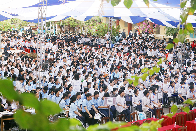 Học sinh các trường THPT trong tỉnh tham dự Ngày hội tư vấn tuyển sinh hướng nghiệp tại Trường ĐH Tiền Giang (năm 2025).