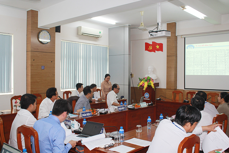 Tại phiên làm việc, đại diện Khoa Nông nghiệp và Công nghệ thực phẩm đã trình bày Báo cáo thẩm định chương trình đào tạo Bác sĩ Thú y, làm rõ các nội dung trọng tâm như: căn cứ xây dựng chương trình đào tạo; mục tiêu đào tạo; chuẩn đầu ra; cấu trúc và thời lượng chương trình; nội dung và mô tả học phần; ma trận đối sánh chuẩn đầu ra; đề cương chi tiết học phần; cũng như các điều kiện đảm bảo chất lượng đào tạo về đội ngũ giảng viên, cơ sở vật chất, phòng thí nghiệm, học liệu và năng lực nghiên cứu khoa học.