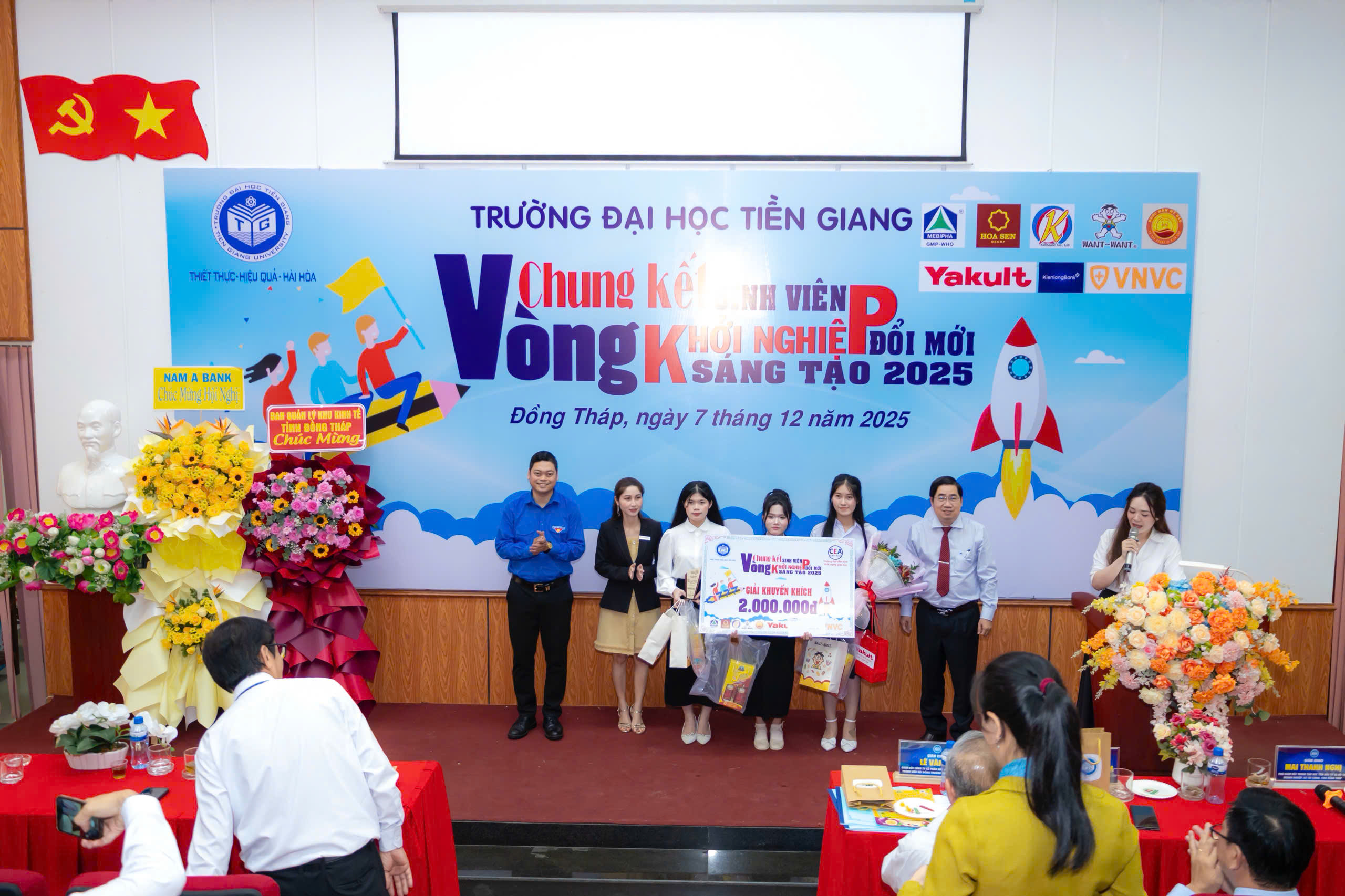 Trong khuôn khổ Vòng chung kết Cuộc thi “Sinh viên khởi nghiệp đổi mới sáng tạo” năm 2025, Trường Đại học Tiền Giang vinh dự nhận được sự đồng hành của Hệ thống Trung tâm Tiêm chủng VNVC – đơn vị uy tín hàng đầu trong lĩnh vực tiêm chủng vắc xin tại Việt Nam. Đây là sự hỗ trợ thiết thực góp phần tạo nên một chương trình thành công, chỉn chu và mang lại nhiều trải nghiệm tích cực cho sinh viên