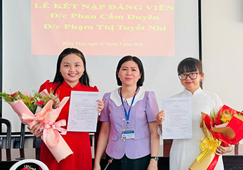 Ngày 02/03/2026, Chi bộ 05 (Khoa SP & KHCB) đã tổ chức Lễ kết nạp Đảng viên mới cho 02 quần chúng ưu tú là sinh viên gồm: Đồng chí Phan Cẩm Duyên và Đồng chí Phạm Thị Tuyết Nhi (Sinh viên lớp ĐH Giáo dục Tiểu học 22).