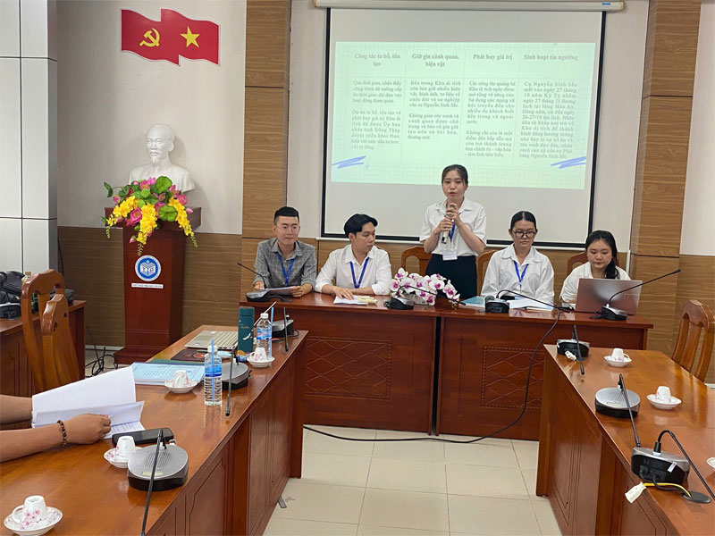 Chiều ngày 04/11/2025, Bộ môn Khoa học Xã hội (Khoa Sư phạm và Khoa học cơ bản, Trường Đại học Tiền Giang) đã tổ chức buổi đánh giá báo cáo chuyên đề thực tập tốt nghiệp cho 14 sinh viên Lớp Đại học Văn hóa học khóa 22. Đây là hoạt động tổng kết học phần Thực tập chuyên đề tốt nghiệp đã được triển khai trong sáu tuần, từ ngày 8/9 đến 19/10/2025.