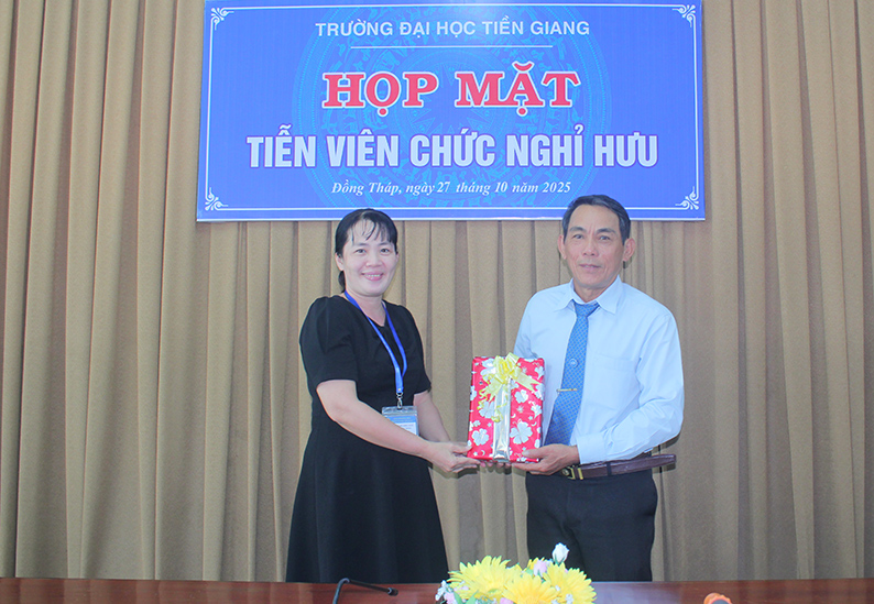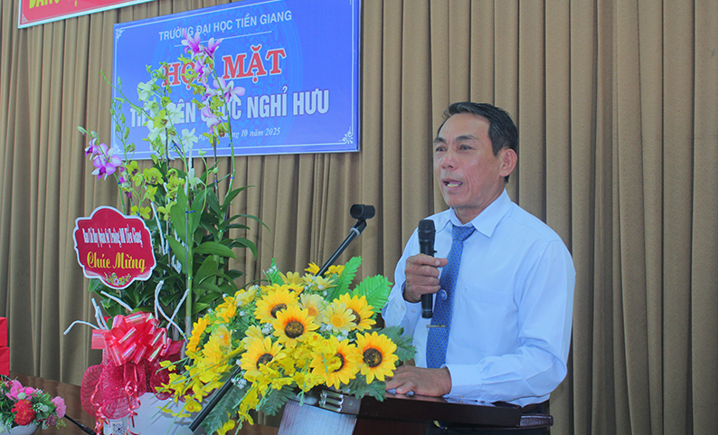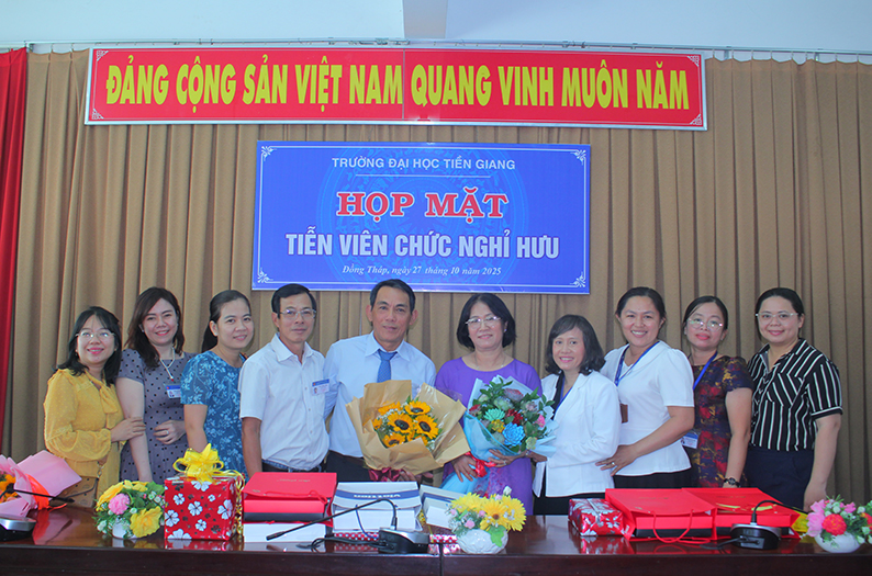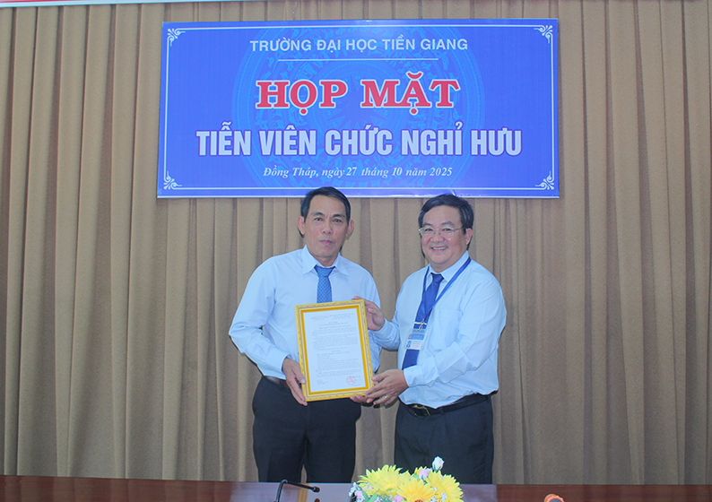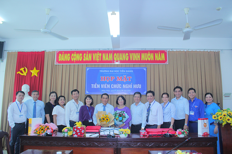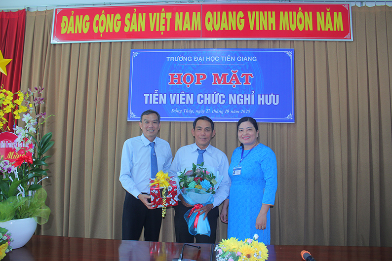 Chiều ngày 27/10/2025, Trường Đại học Tiền Giang long trọng tổ chức Lễ tiễn thầy Huỳnh Phong Bá – Phó Chỉ huy trưởng Ban Chỉ huy Quân sự Trường – về nghỉ hưu theo chế độ. Tham dự buổi lễ có TS. Nguyễn Hoàng Vũ - Bí thư Đảng uỷ, Chủ tịch Hội đồng Trường, đại diện Ban Thường vụ Đảng ủy, Ban Giám hiệu, Ban Thường vụ Công đoàn cơ sở, Ban Chỉ huy Quân sự Trường cùng đông đảo cán bộ, giảng viên và đồng nghiệp của thầy.