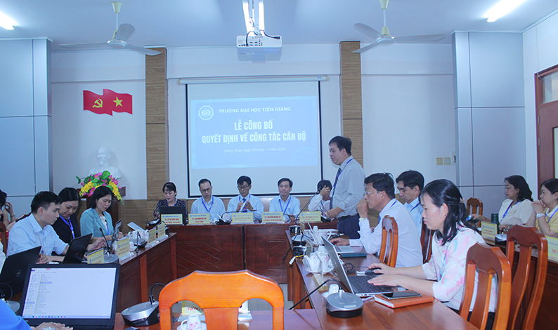 Phát biểu tại buổi lễ, Hiệu trưởng Trường Đại học Tiền Giang ghi nhận, biểu dương những nỗ lực, đóng góp của các viên chức trong thời gian qua; đồng thời bày tỏ mong muốn các đồng chí được điều động, bổ nhiệm và bổ nhiệm lại sẽ tiếp tục phát huy tinh thần trách nhiệm, năng lực chuyên môn, đoàn kết cùng tập thể đơn vị hoàn thành tốt nhiệm vụ được giao, góp phần thực hiện thắng lợi mục tiêu phát triển của nhà trường trong giai đoạn mới.