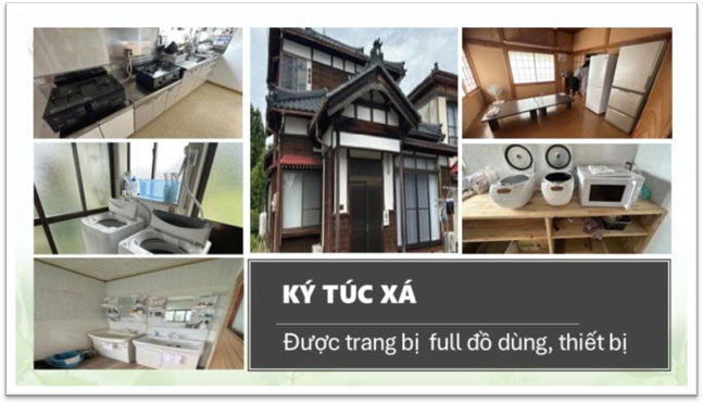 - Có xe đưa đón mỗi ngày, ký túc xá sạch đẹp, gần nhà ga & siêu thị tiện lợi