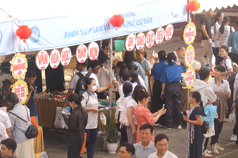 Học sinh các trường THPT tham quan gian hàng giới thiệu của Khoa SP & KHCB tại Ngày hội tư vấn tuyển sinh hướng nghiệp năm 2025 do Báo Tuổi trẻ tổ chức tại TGU.