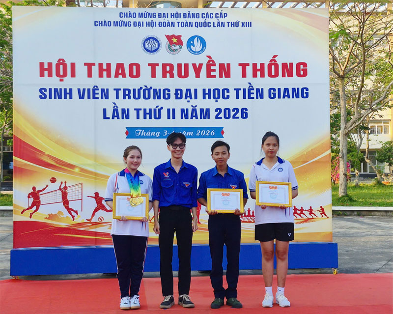 Trong không khí sôi nổi của Tháng Thanh niên năm 2026, chiều ngày 30/3/2026, Hội thao truyền thống Sinh viên Trường Đại học Tiền Giang lần thứ II đã chính thức khép lại bằng buổi lễ bế mạc và trao giải với nhiều dấu ấn tích cực, để lại những hình ảnh đẹp về tinh thần thể thao, đoàn kết và nhiệt huyết của tuổi trẻ nhà trường.