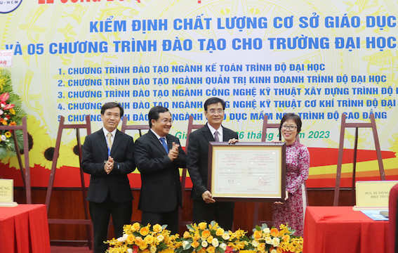 Sáng ngày 26/4, Trường ĐH Tiền Giang đã long trọng tổ chức Lễ công bố quyết định và trao giấy chứng nhận đạt kiểm định chất lượng Cơ sở giáo dục và 05 Chương trình đào tạo, gồm: Đại học Kế toán, Đại học Quản trị Kinh doanh, Đại học Công nghệ kỹ thuật xây dựng, Đại học Công nghệ Kỹ thuật cơ khí, Cao đẳng Giáo dục mầm non do Trung tâm kiểm định chất lượng giáo dục, Đại học Quốc gia TP Hồ Chí Minh (CEA) công nhận.