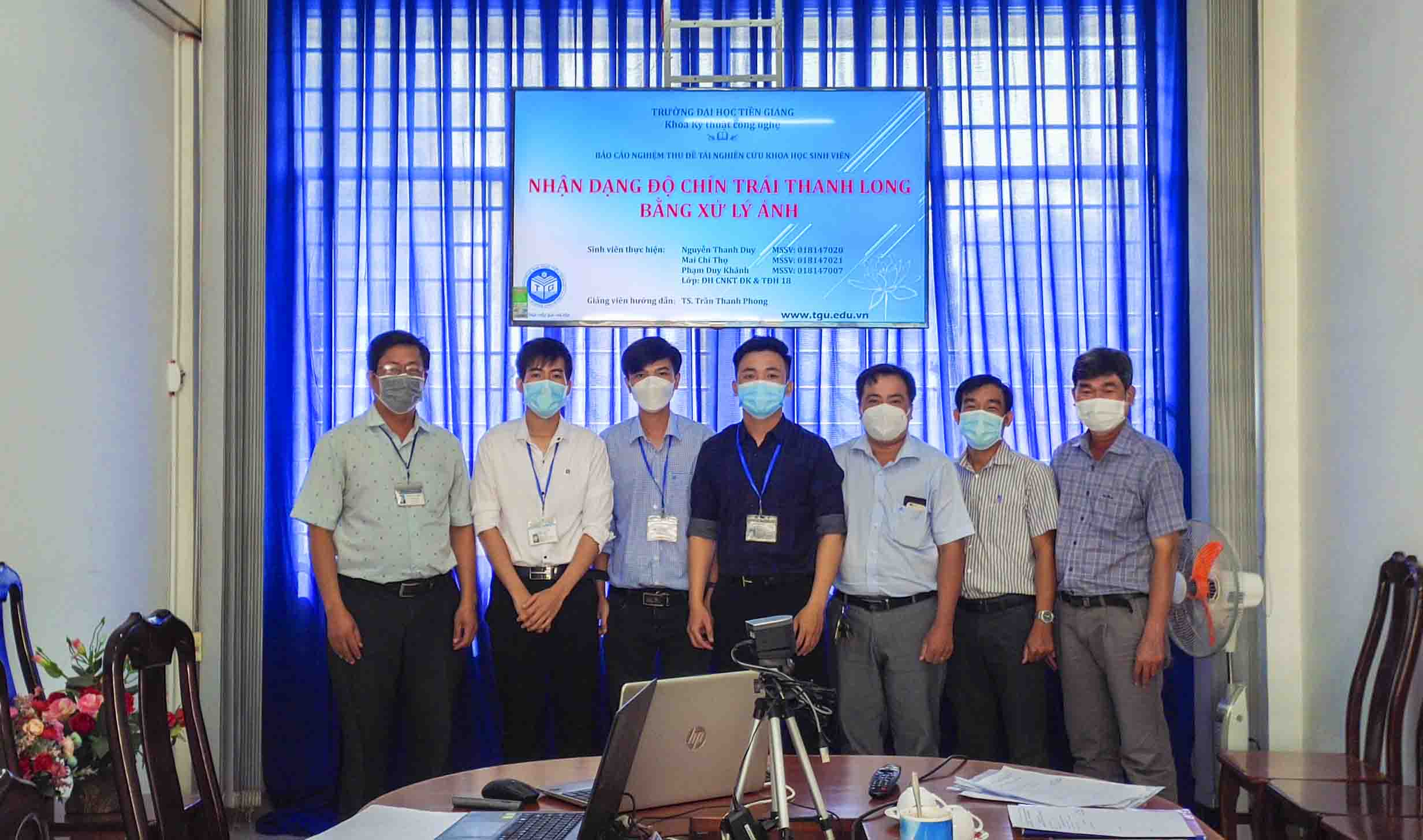 Ngày 23/02/2022, Phòng QLKHCN&HTQT đã tổ chức nghiệm thu đề tài nghiên cứu khoa học cấp Trường: “Nhận dạng độ chín trái thanh long bằng xử lý ảnh” do các sinh viên Nguyễn Thanh Duy, Mai Chí Thọ, Phạm Duy Khánh - Lớp Đại học Công nghệ kỹ thuật Điều khiển và Tự động hóa Khóa 18, Khoa Kỹ thuật công nghệ thực hiện dưới sự hướng dẫn khoa học của TS. Trần Thanh Phong. Kết quả nghiệm thu đề tài: Xếp loại Tốt.