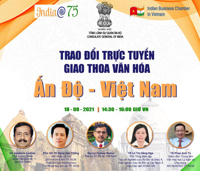 Tiếp nối các hoạt động trong chuỗi sự kiện chào mừng lần thứ 75, ngày Độc lập Ấn Độ, Tổng Lãnh sự quán Ấn Độ tại TPHCM mới đây đã tổ chức sự kiện trao đổi trực tuyến giao thoa văn hóa Việt Nam - Ấn Độ.