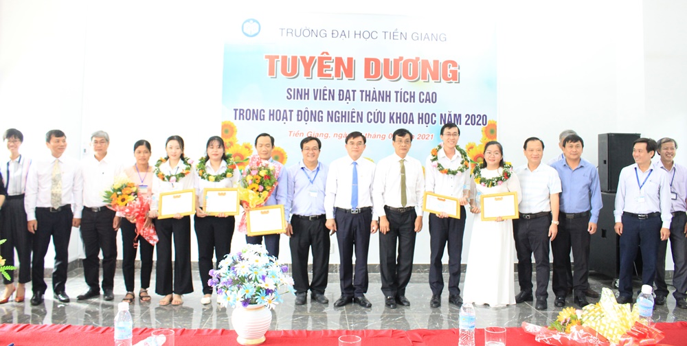 Ngày 08/01/2021, Trường Đại học Tiền Giang tổ chức chương trình tuyên dương sinh viên đạt thành tích cao trong hoạt động nghiên cứu khoa học năm 2020. Đến dự có: ông Nguyễn Văn Mười - Phó Chủ tịch Ủy ban nhân dân tỉnh Tiền Giang; ông Nguyễn Văn Khang - Nguyên Chủ tịch Ủy ban nhân dân tỉnh, Chủ tịch Liên hiệp các hội Khoa học và Kỹ thuật Tiền Giang; T.S Nguyễn Viết Thịnh - Bí thư Đảng ủy, Chủ tịch Hội Đồng trường; PGS. TS Võ Ngọc Hà - Hiệu trưởng Nhà trường; TS Lê Hữu Hải và TS. Lê Minh Tùng - Phó Hiệu trưởng Nhà trường.