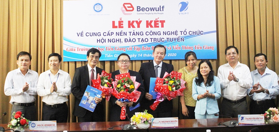 Chiều 14-7-2020, Trường Đại học Tiền Giang đã tổ chức Lễ ký kết thực hiện cung cấp nền tảng công nghệ tổ chức hội thảo, đào tạo trực tuyến với Công ty TNHH BeoWulf Việt Nam và VNPT Tiền Giang. Theo đó, việc cung cấp nền tảng đào tạo trực tuyến trên công nghệ Quikcom sẽ hỗ trợ cho việc học Tiếng Anh giao tiếp cho các đối tượng người học ở vùng sâu, vùng xa thông qua ứng dụng VN Edu của Tập đoàn VNPT và công nghệ đào tạo từ xa của Tập đoàn BeoWulf.