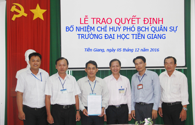 Chiều ngày 05/12/2016, Ban Chỉ huy Quân sự Trường ĐH Tiền Giang đã tổ chức trao quyết định bổ nhiệm chức danh Chỉ huy phó Ban Chỉ huy Quân sự Trường đối với đồng chí Huỳnh Phong Bá – Phó Trưởng Bộ môn Giáo dục thể chất và Quốc phòng thay đồng chí Phan Văn Sĩ về hưu theo chế độ.